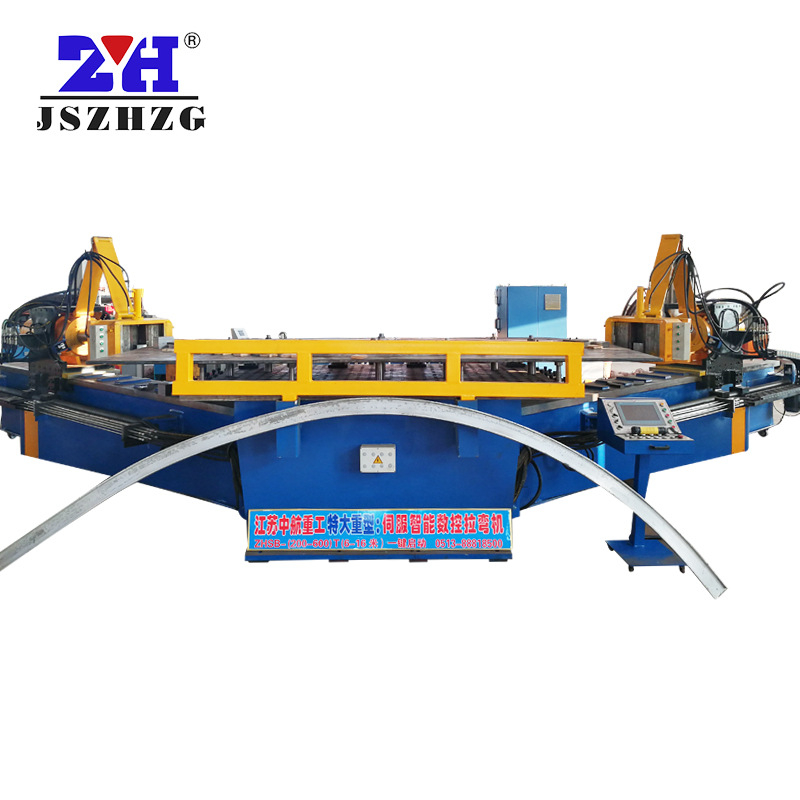 鋼管用拉彎機受純彎曲作用,而無拉力作用,拉應力與壓應力轉變的臨界面,即應力為零的中性面就是鋼帶的幾何對稱面,即中心層。拉彎廠鋼管在通過第二個彎曲輥產生的變形也同樣如此,其拉應力或壓應力基本相同,而方向正好相反。如此一個循環后變形疊加的結果,是拉伸和壓縮變形相消,不管是只產生彈性變形,還是既產生彈性變形,又產生塑性變形都是如此,鋼帶不會產生伸長,更不會消除波浪改善板形。