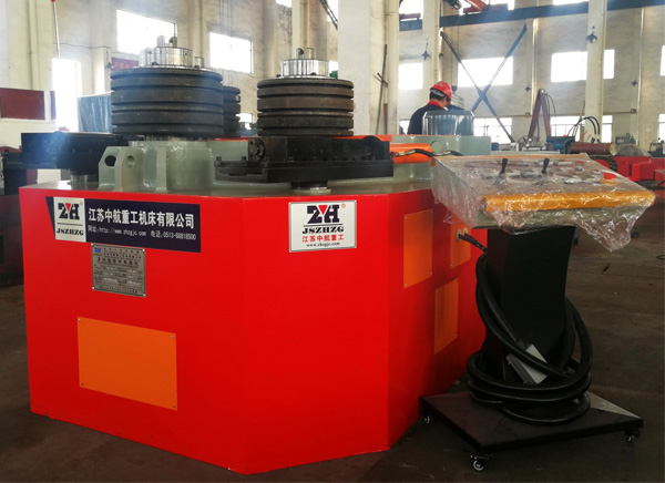 型材彎曲機分臥式和立式兩種,根據不同的軸布置也可分為上調式和下調式,它是彎曲鋁合金異型材、扁鋼、方鋼、圓鋼、角鋼、I型鋼、H型鋼、方管、矩形管、圓管等型材的先進機器。可根據用戶的要求訂制不同的模具。4輥都是主動輥、有4個獨立的液壓馬達驅動。卷制速度快、精度高。