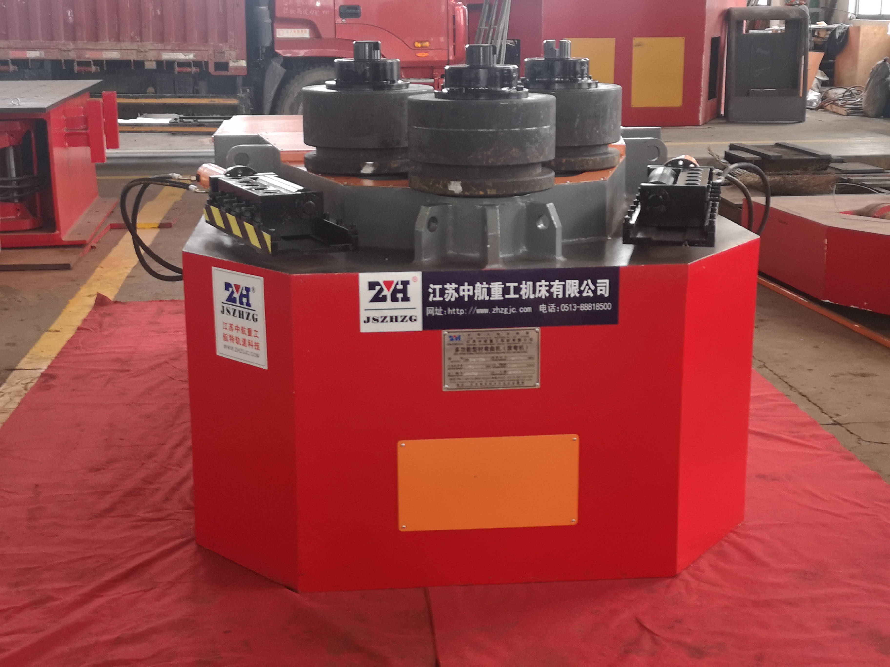 型材彎曲機(jī)在進(jìn)行卷板工作時(shí),上輥位置固定不動(dòng),下輥向上直線運(yùn)動(dòng)夾緊鋼板。兩側(cè)輥直線或弧線向上輥靠攏運(yùn)動(dòng)來(lái)調(diào)整卷筒的曲率半徑。型材彎曲機(jī)的輥?zhàn)舆\(yùn)動(dòng)形式不同,但工作原理都一樣,都是利用三點(diǎn)定圓的原理來(lái)進(jìn)行不同半徑的卷制。但型材彎曲機(jī)預(yù)彎的直邊和校圓的圓度都要比三輥好。