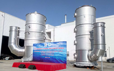????船用煙氣脫硫塔主要是通過降溫后的船舶煙氣和堿液接觸,來充分吸收重油燃燒后煙氣中攜帶的含硫物質,然后排放;煙氣進口處設有海水降溫噴淋裝置,塔體下部設有填料層增加氣液接觸面積,塔體上部設有除霧器可以在煙氣排放前除去其中的液體。脫硫后煙氣中硫含量≤0.1%。