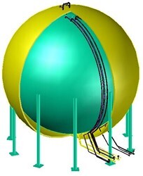 ???公司具備國內壓力容器規則設計、分析設計的完整資格和能力,是國內最早取得SAD分析設計資質的單位之一,且建成了國內第一臺采用分析設計建造的球罐。同時,公司擁有專業球罐計算軟件,通過與ANSYS軟件的高度融合,可有效減小球殼厚度、優化結構形式,在大幅節約材料成本的同時,顯著提升球罐的安全性與可靠性。