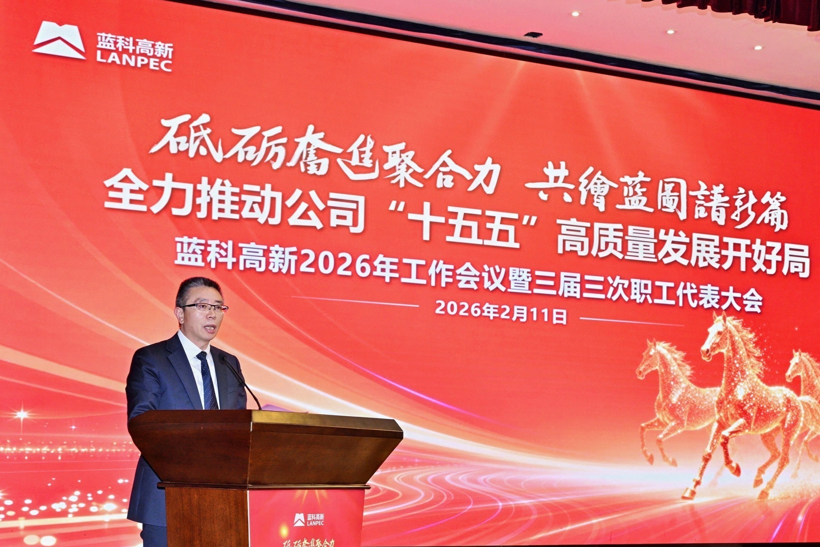 2月11日,藍科高新于上海、蘭州兩地同步召開2026年工作會暨三屆三次職工代表大會。會議以習近平新時代中國特色社會主義思想為指導,全面貫徹黨的二十屆四中全會和中央經濟工作會議精神,深入貫徹習近平總書記對中央企業工作的重要指示精神,嚴格落實國務院國資委和國機集團2026年度工作部署,回顧總結2025年及“十四五”時期工作成效,分析研判當前形勢與任務挑戰,系統謀劃部署2026年重點工作,為“十五五”時期發展開好局、起好步奠定堅實基礎。藍科高新助理級以上領導、部分董事、全體干部職工線上線下參會。中國空分工程有限公司、機械工業上海藍亞石化設備檢測所有限公司相關負責人受邀參會,藍科高新黨委委員、副總經理張尚文主持會議。